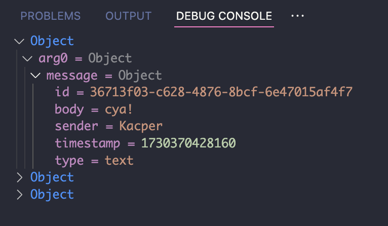Radon IDE logs objects in a contracted form. You can expand the object log by clicking on it to see more details.